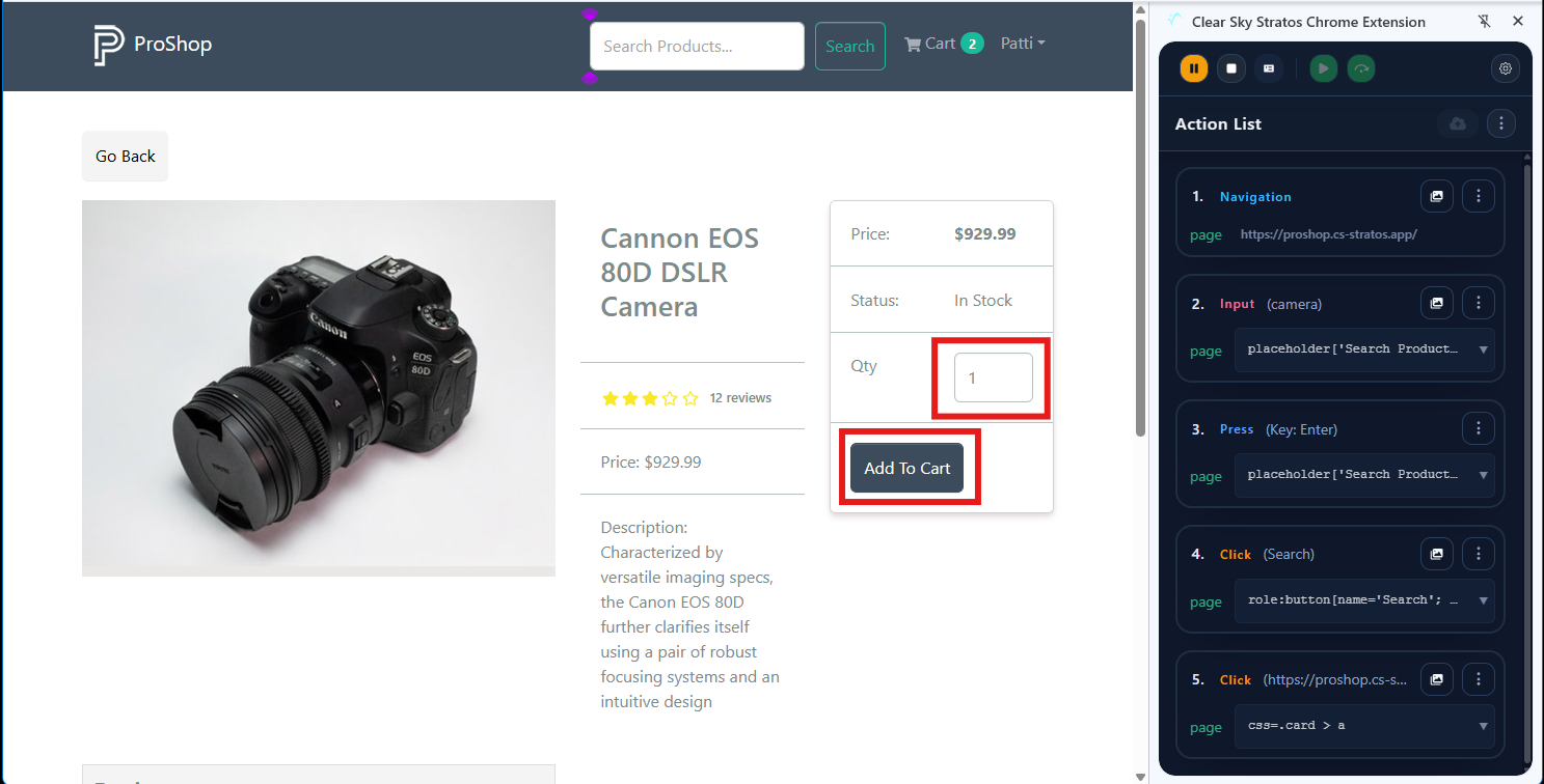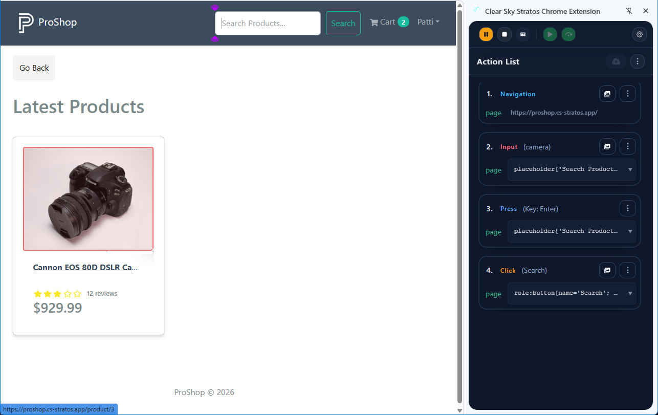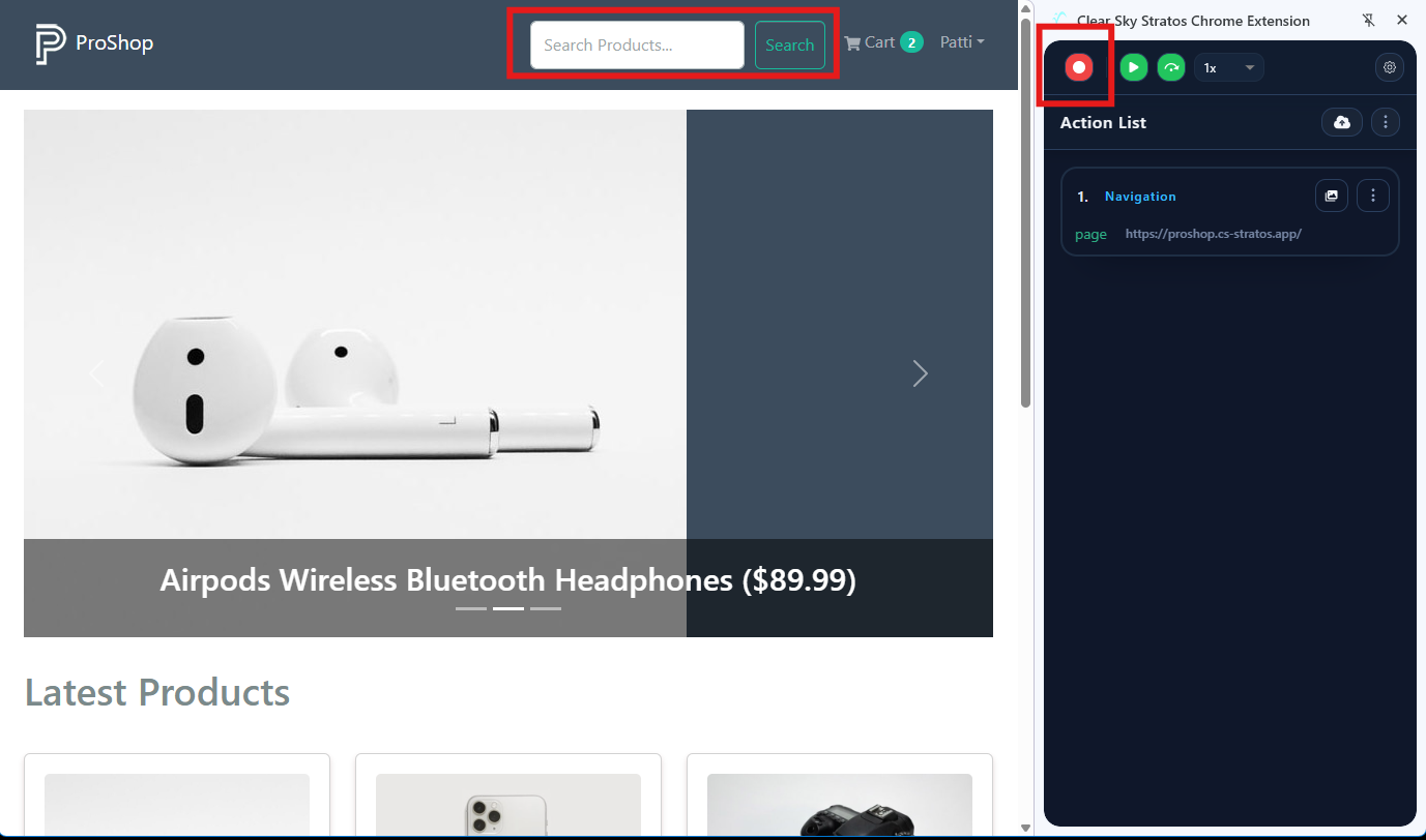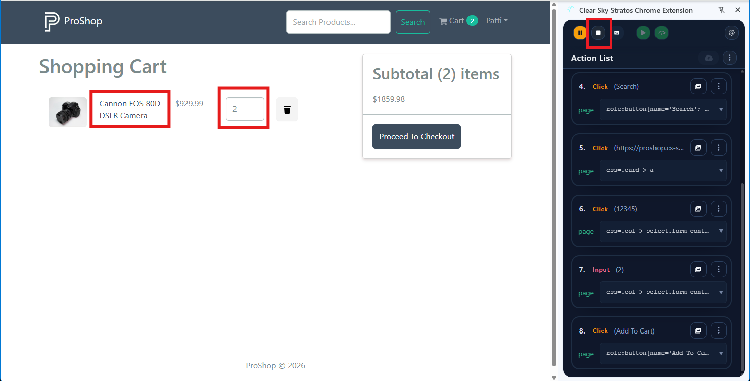 As you record: Actions are being captured in the extension. Highlighting on the web page will show you what is being selected.