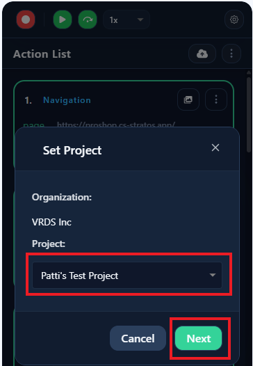 - Select the Studio project upload to the recorded test to.