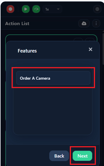 - Select the desired Feature