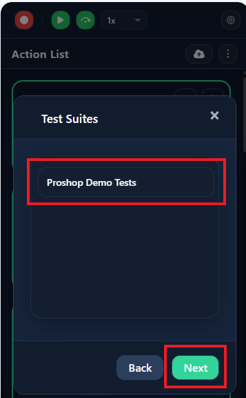- Select the desired Test Suite